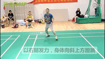 ●《前后场连贯步伐—从容应对后场推球》之辅腿之蹬