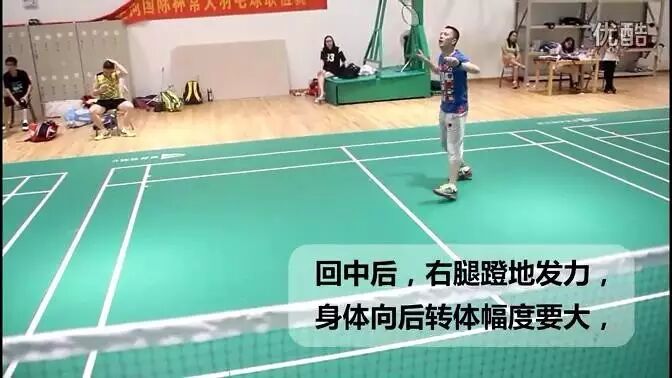 当网前放小球,被推了后场,就要用到“前后场连贯步法”。