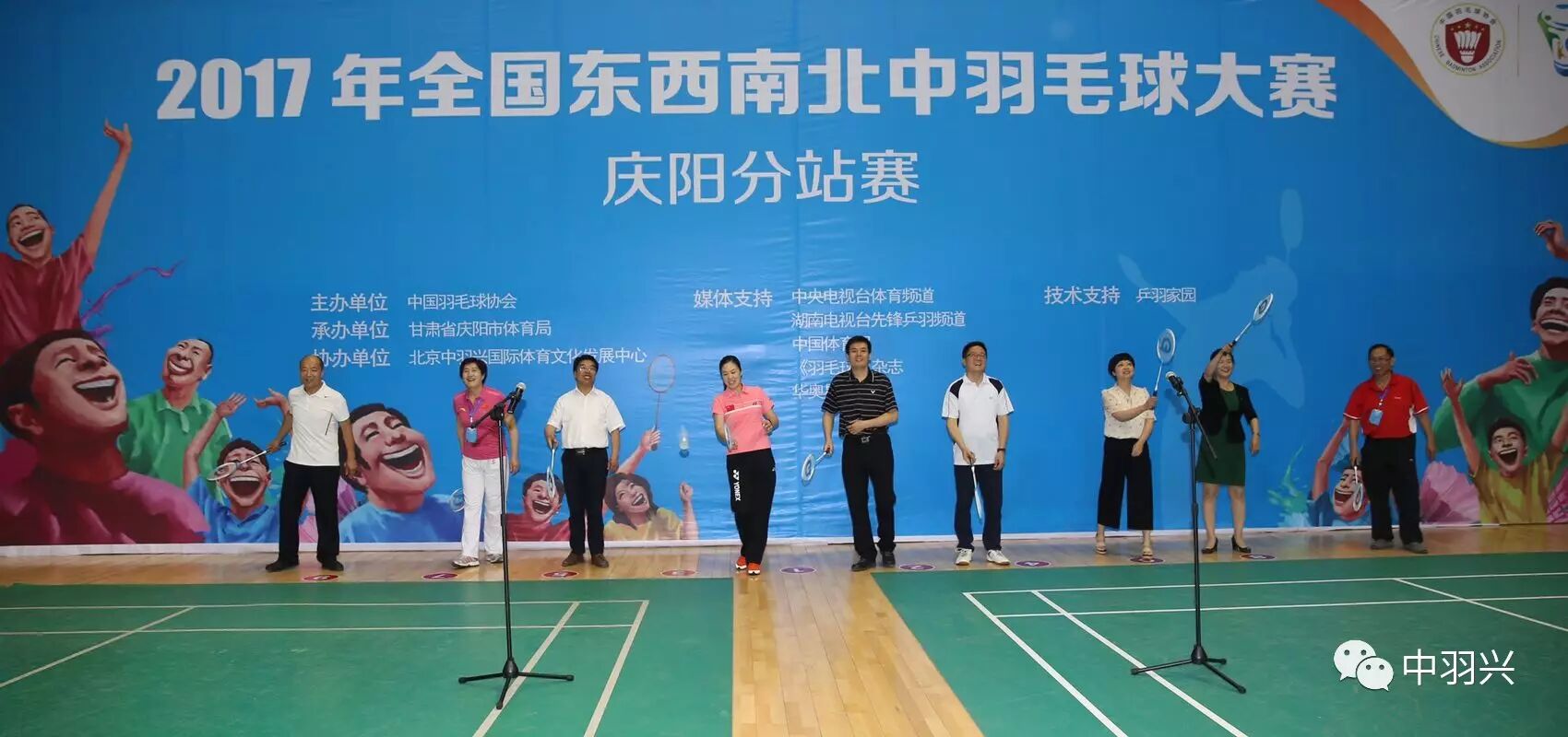 7月8日,由中国羽毛球协会主办,甘肃省庆阳市体育局承办,北京中羽兴国际体育文化发展中心协办的全国东西南北中羽毛球比赛庆阳分站赛(全国十三运群众羽毛 球预赛资格赛)在庆阳体育馆拉开帷幕。来自广东、福建、辽宁、山东、浙江、江西、上海,广西等全国二十五个省市,400名运动员参加七个组别、27个单项 的比赛。比赛将于今天下午结束,并举行颁奖仪式。