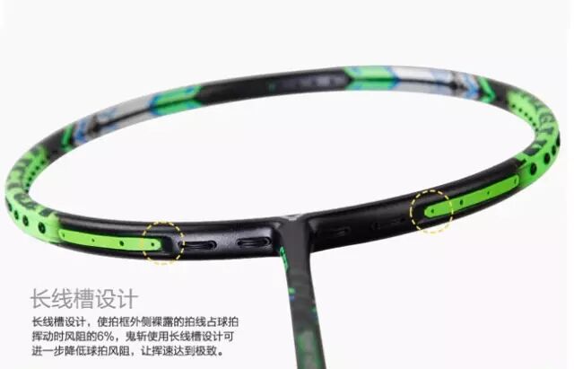 霸气——黑色为主色尽显刚硬霸气的风范,荧光绿色的花纹在挥拍时就像道道幽光剑影,青龙吟流水,绝杀神兵“TK鬼斩”!