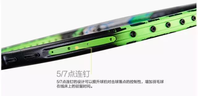 杀气——4U的超轻的重量,6.4MM的极细中杆,让整个拍子的重量都集中在了拍头上,达到超强的鞭甩效果;拍头2、10点位置的GTX能量盒,让击球释放出更强劲的能量;同时小拍框设计加上连钉配置,让整个拍框上全副武装暴力气息,破杀八方!